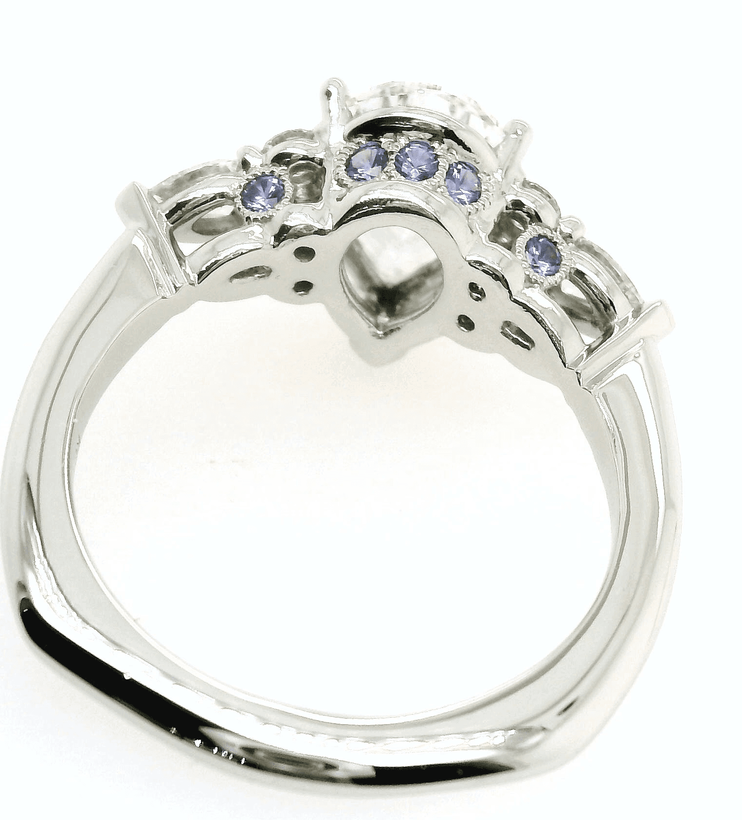 Below, you can see each lavender sapphire set in a bezel with milgrain surrounding each stone.