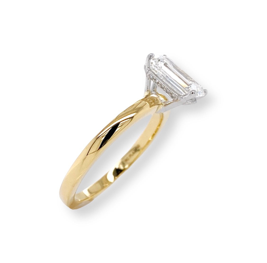 For rings with one center stone in yellow gold: if it is a must to have your ring in all yellow gold, then half moon bezels are strongly recommended to secure your stone. The other options are platinum prongs, or thicker yellow gold prongs. We repair thousands of rings each year from other jewelers with loose or missing stones/and prongs issues because of lack of attention to detail and poor quality prongs.